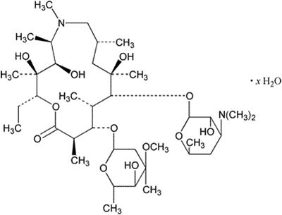 Azithromycin is a macrolide antibiotic with high stability at acidic pH, long half-life, and favorable effectiveness against a range of organisms In addition, it interferes poorly with the cytochrome P450 system in vitro, limiting side effects related to drug interactions.