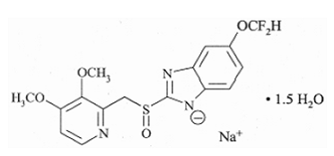 sesquihydrate, a compound that inhibits gastric acid secretion. Its empirical formula is C16H14F2N3NaO4S x 1.5 H2O, with a molecular weight of 432.4.